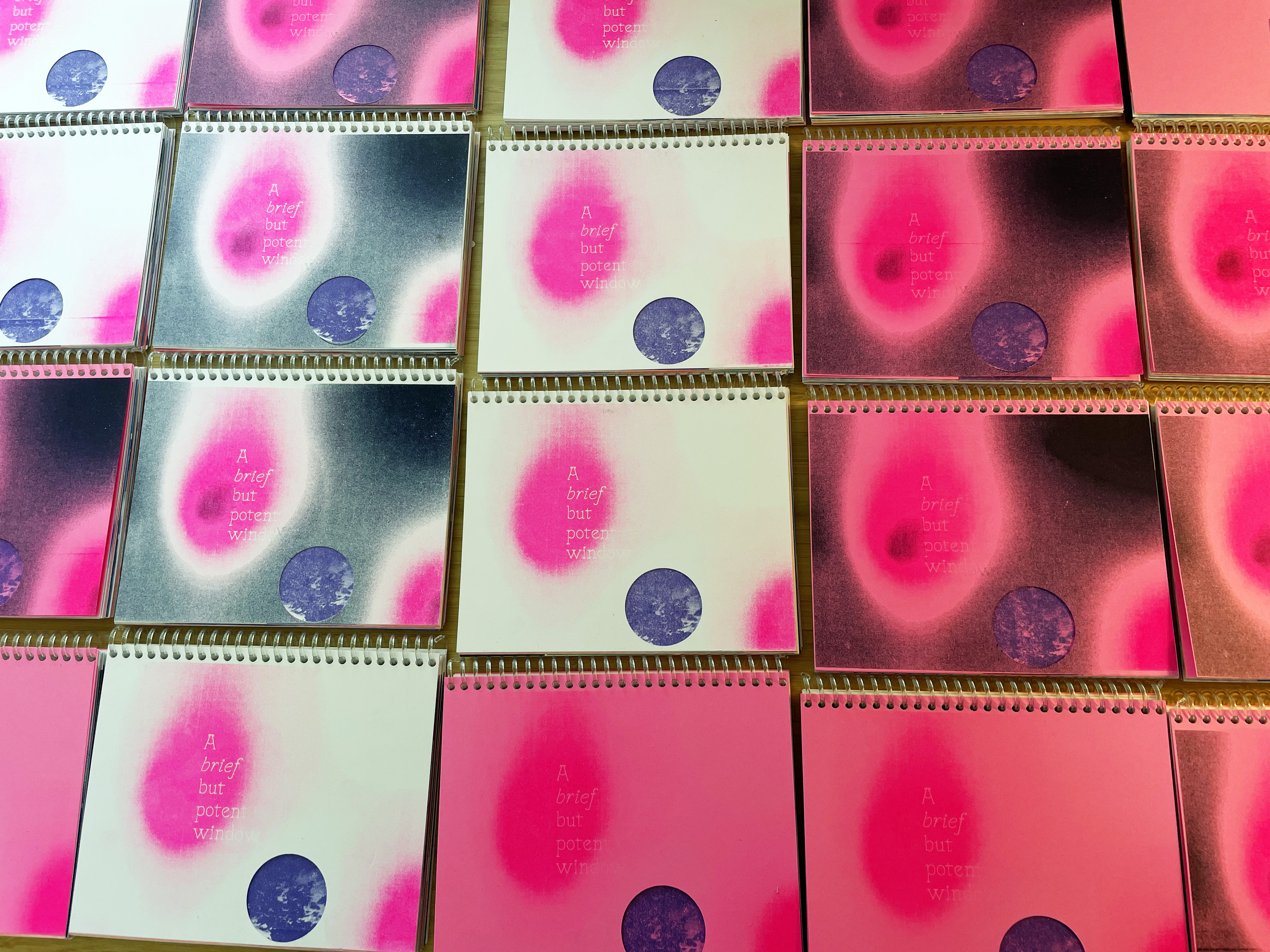 A brief but potent window is an art book that I self-published about the feeling of watching a lot of sunsets all in a row -- each one abstracted and distilled into a single dynamic image. It stems from a desire to create book that could act as a refuge - or at least a distraction from existential ennui.